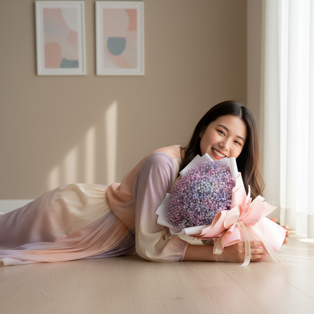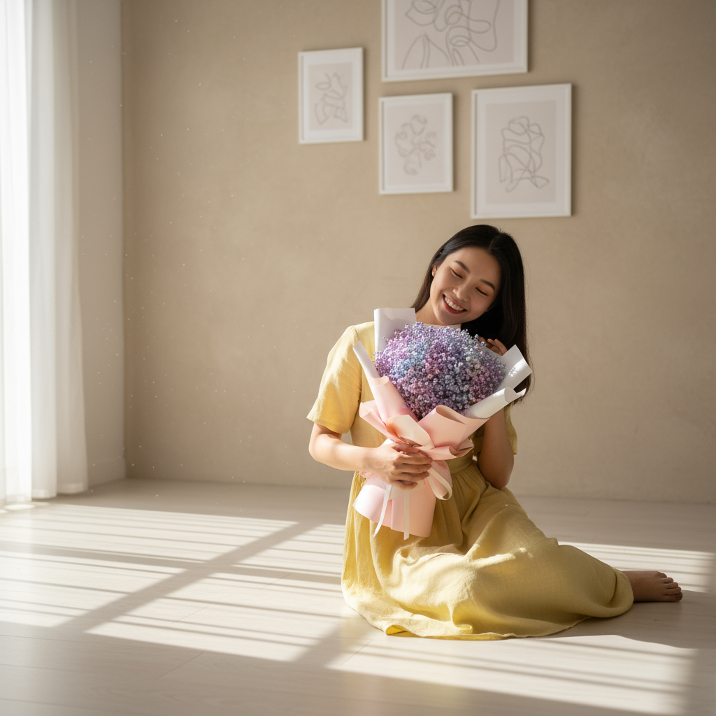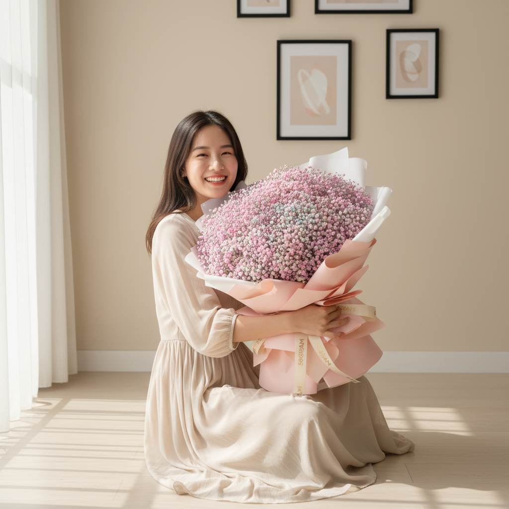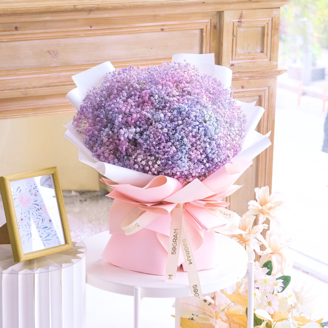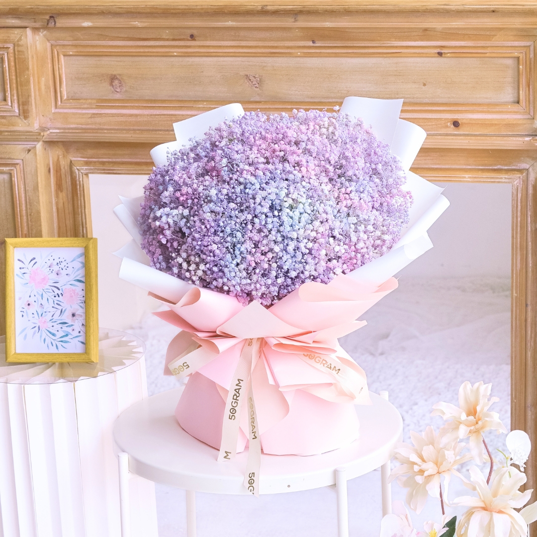 The “Baby Radiance Baby Breath Hand Bouquet” is a delicate and enchanting arrangement that features a soft mixture of colors, including shades of purple, blue, pink, and white. Adorned with charming baby’s breath, this bouquet radiates a gentle, ethereal beauty that’s perfect for celebrating new beginnings or adding a touch of elegance to any occasion. It symbolizes innocence, purity, and the joy of life’s tender moments. 🌸💙💜🤍