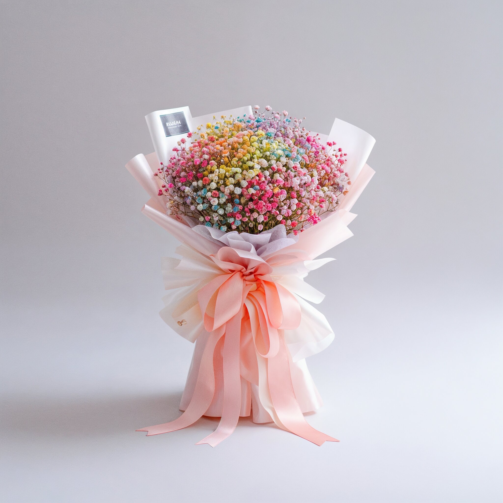 - Enjoy our complimentary delivery service in KL & PJ, ensuring your gifting experience is seamless and effortless. Make every moment count with our ‘Baby Rainbow’ Baby Breath Hand Bouquet.