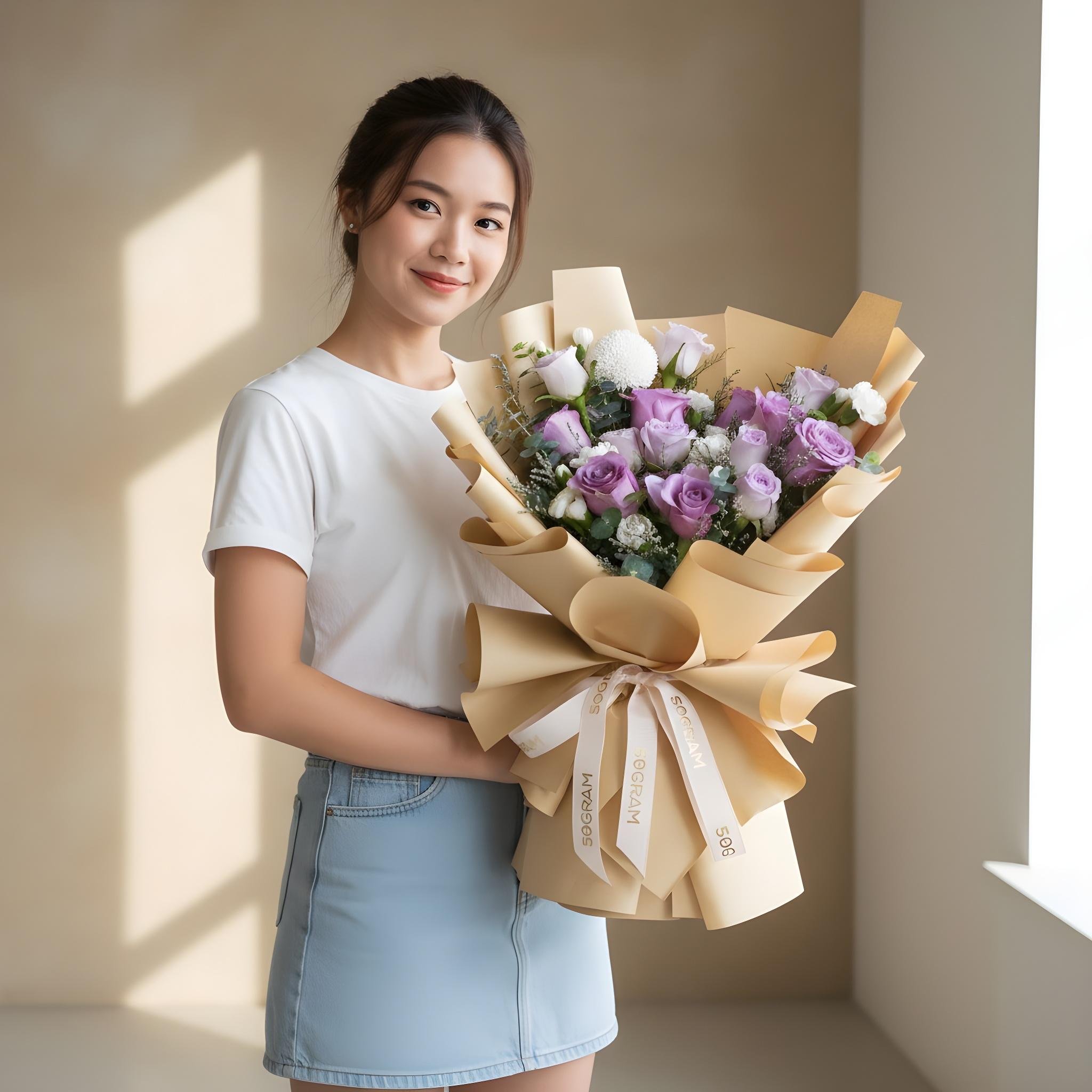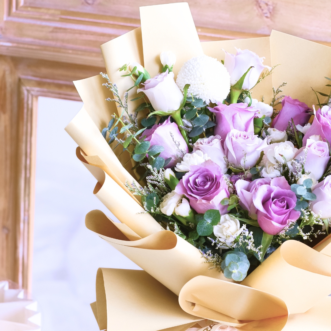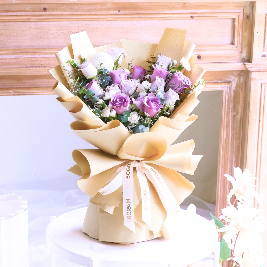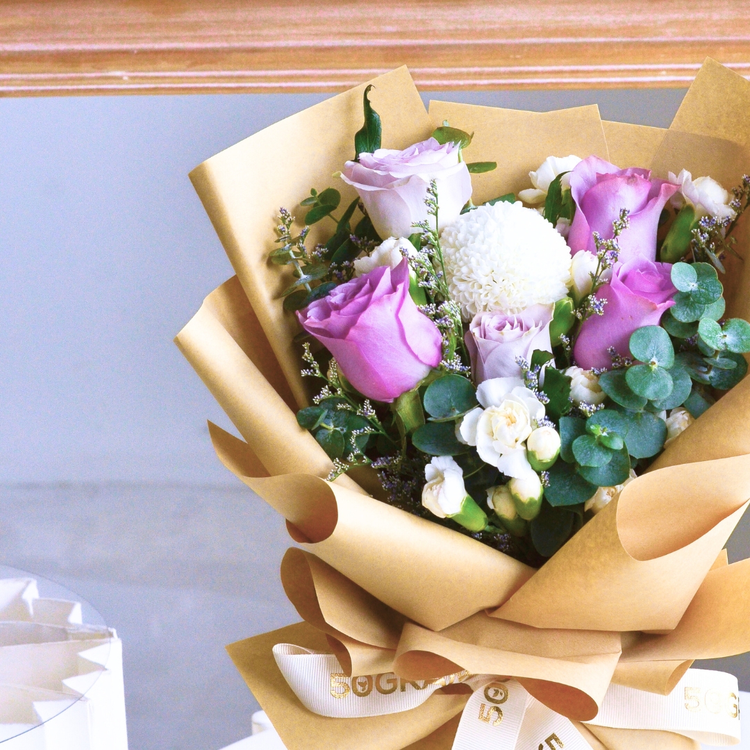 • Free Delivery in KL & PJ: Enjoy the convenience of complimentary delivery within Kuala Lumpur and Petaling Jaya. We ensure that your blush purple roses hand bouquet is carefully delivered, guaranteeing the recipient receives a stunning arrangement that will enchant and delight their senses.