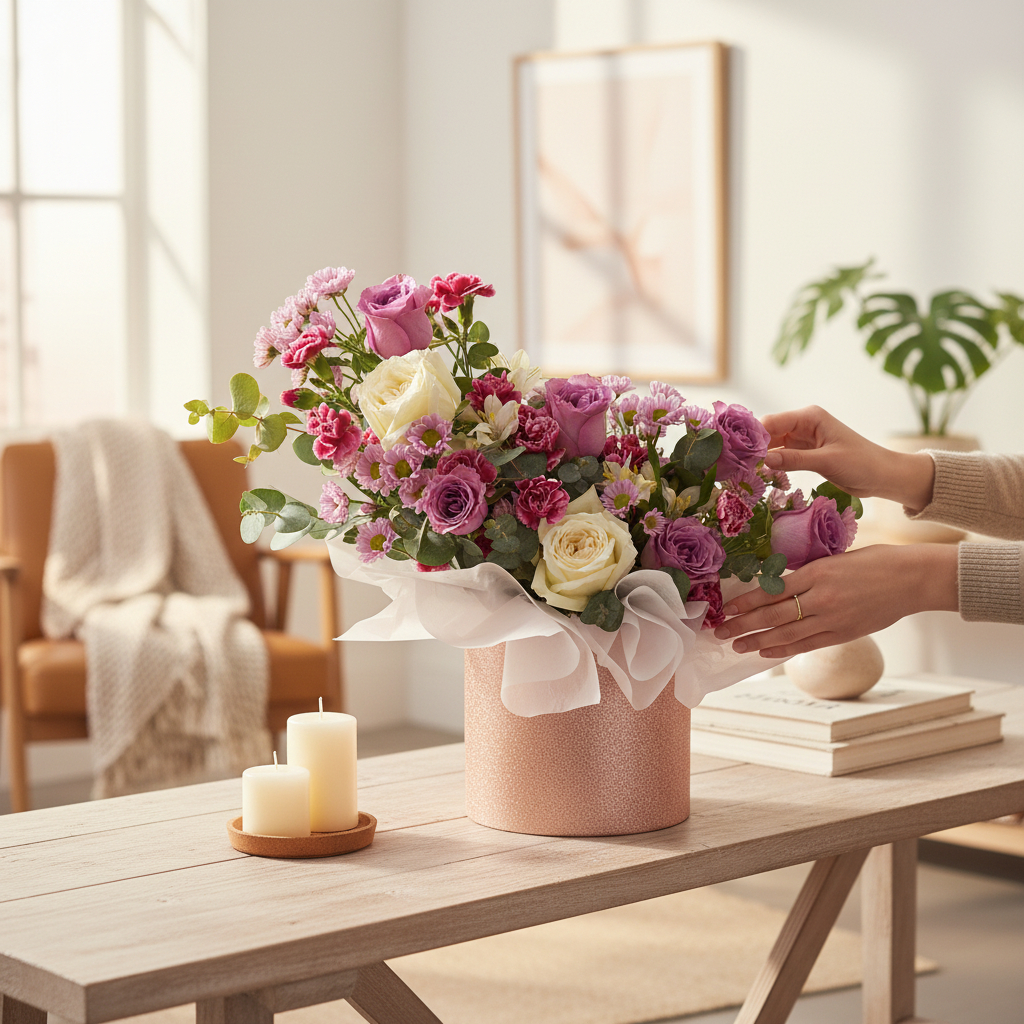 Presented in an elegant flower box, this arrangement is not just a collection of flowers; it’s a thoughtful expression of beauty and reverence for the sacred occasion. The “Eid Elegance Ramadan Flower Box” is a perfect gift to share blessings, convey good wishes, and add a touch of floral elegance to the festive celebrations. πŸŒΉπŸ’œπŸŒΌ
