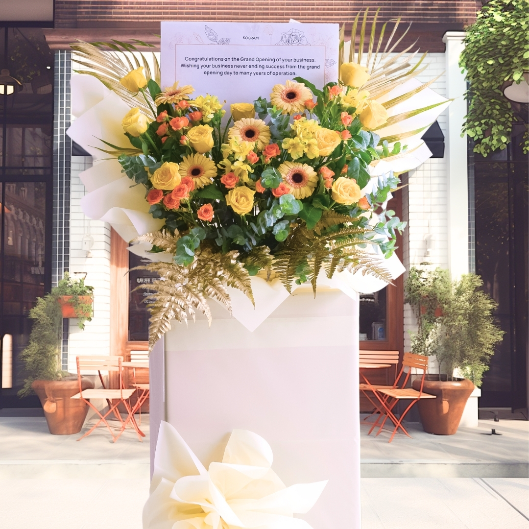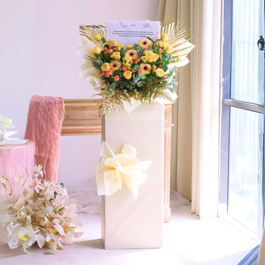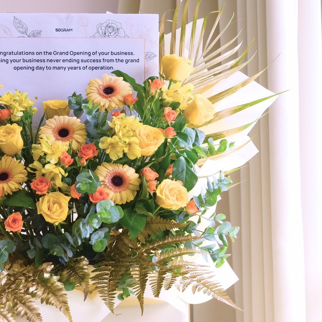 A radiant tribute to new ventures, Grace in Gold celebrates prosperity, elegance, and limitless growth. With hues of gold and warmth, this arrangement sends a powerful message of optimism and lasting success.
