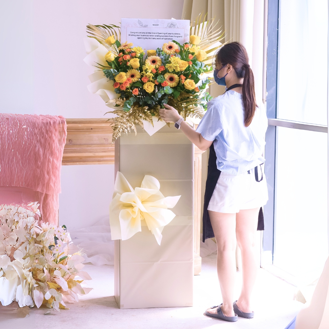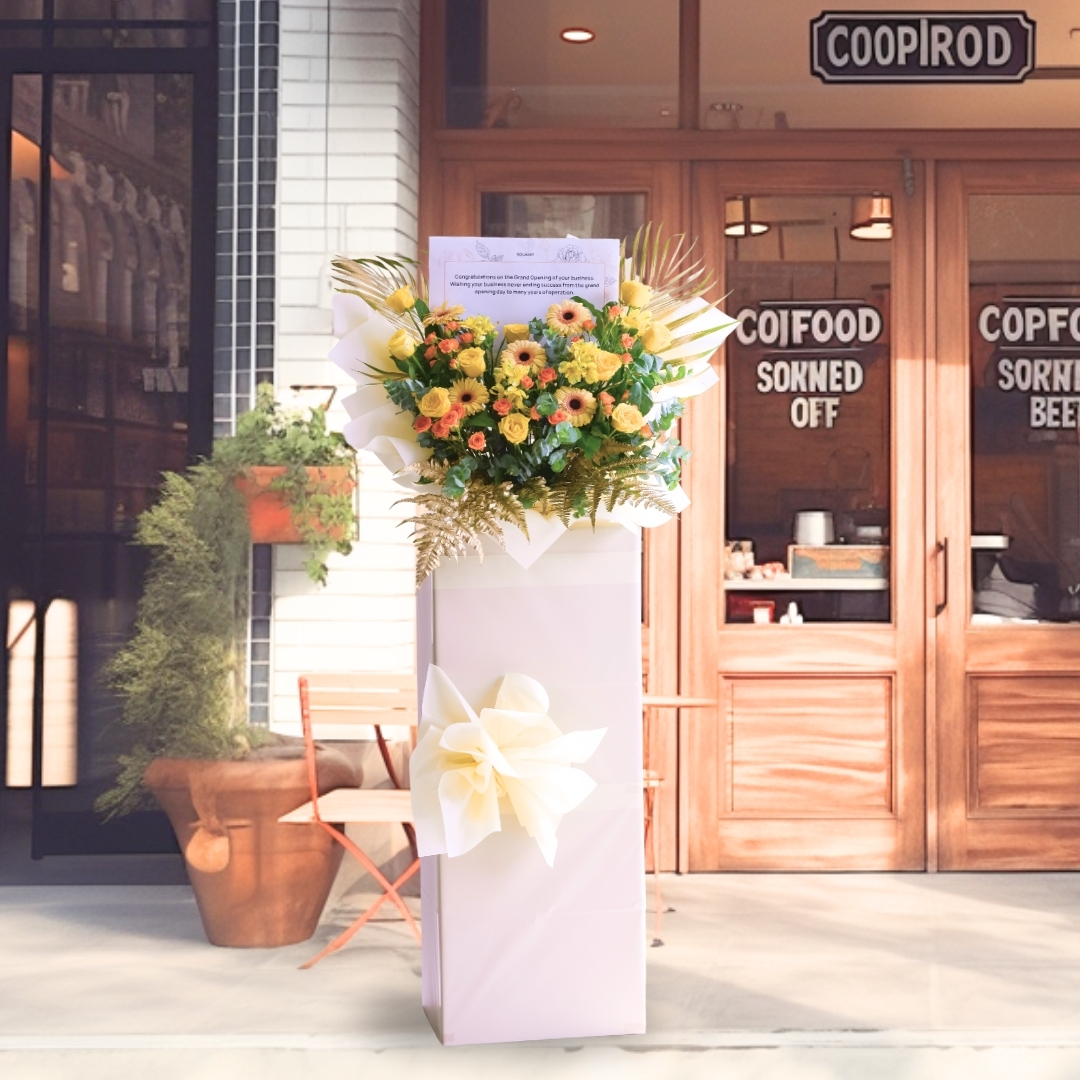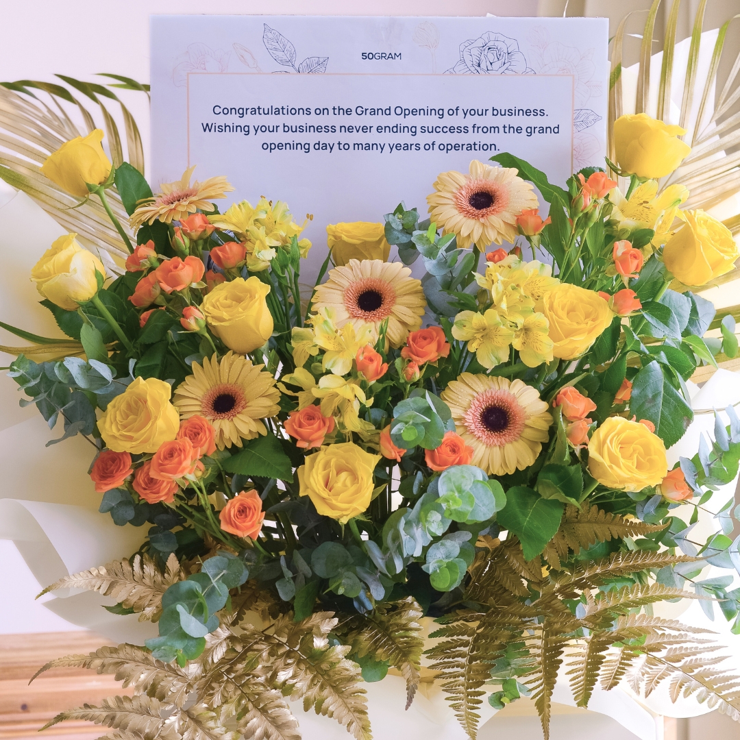 A radiant tribute to new ventures, Grace in Gold celebrates prosperity, elegance, and limitless growth. With hues of gold and warmth, this arrangement sends a powerful message of optimism and lasting success.