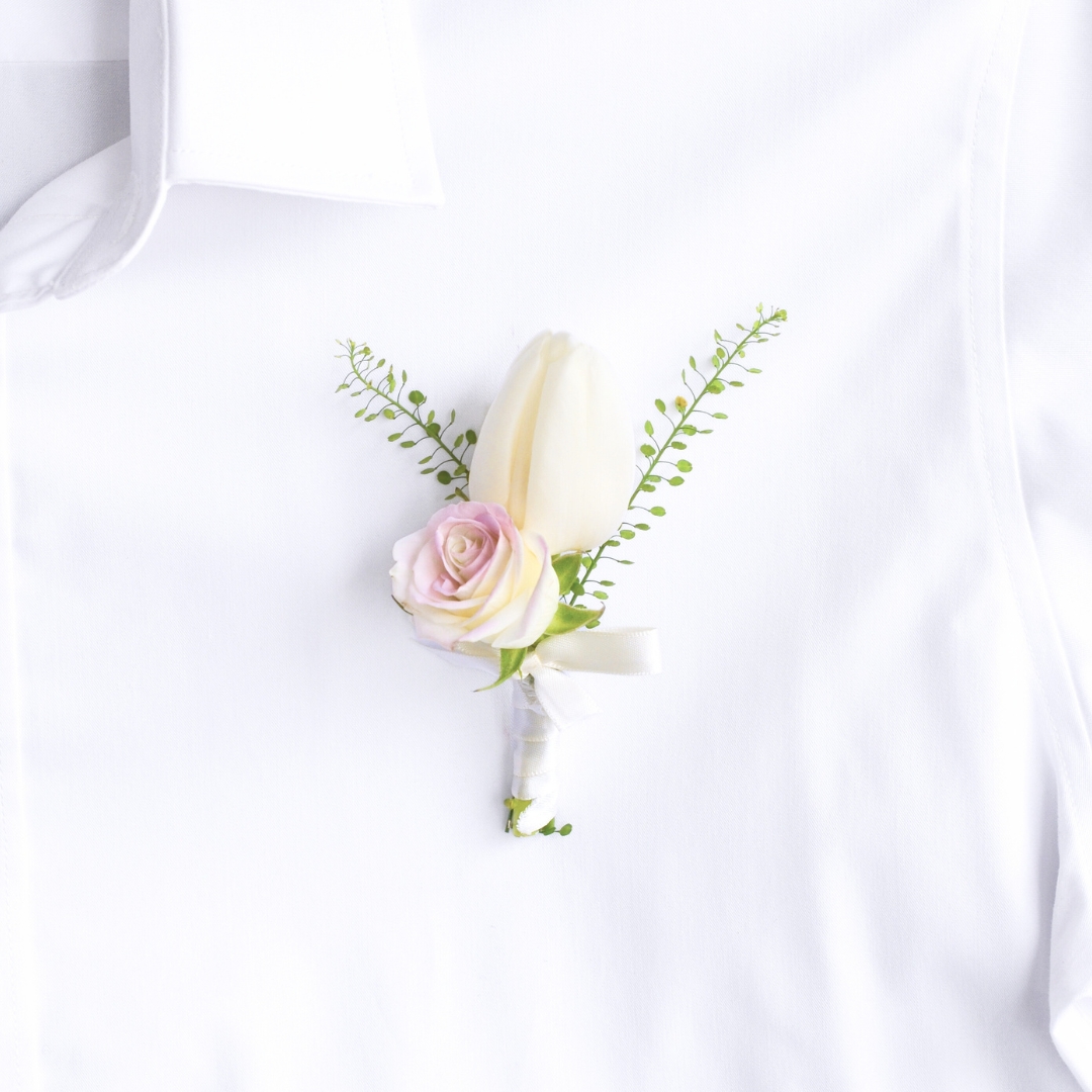 The “Heartfelt Promise Boutonniere” is a delicate and refined design, featuring elegant white tulips and pristine white mini roses. Accented with the charming thalapsi green bell, this corsage creates a soft and timeless look. Perfect for celebrating special moments, it symbolizes sincere commitments and the beauty of heartfelt promises. 🌷🤍🍃