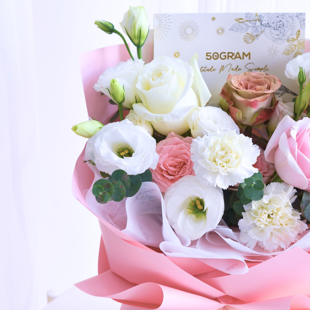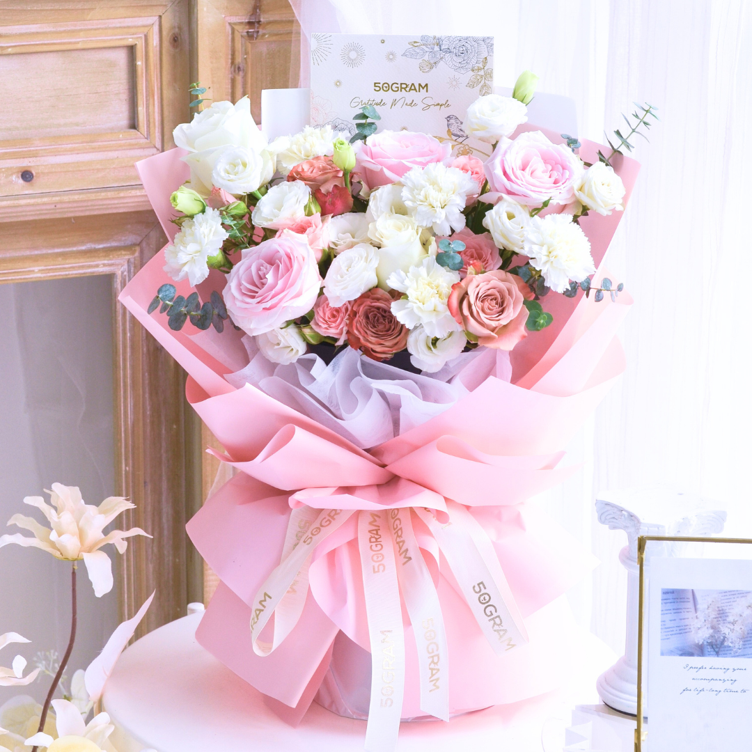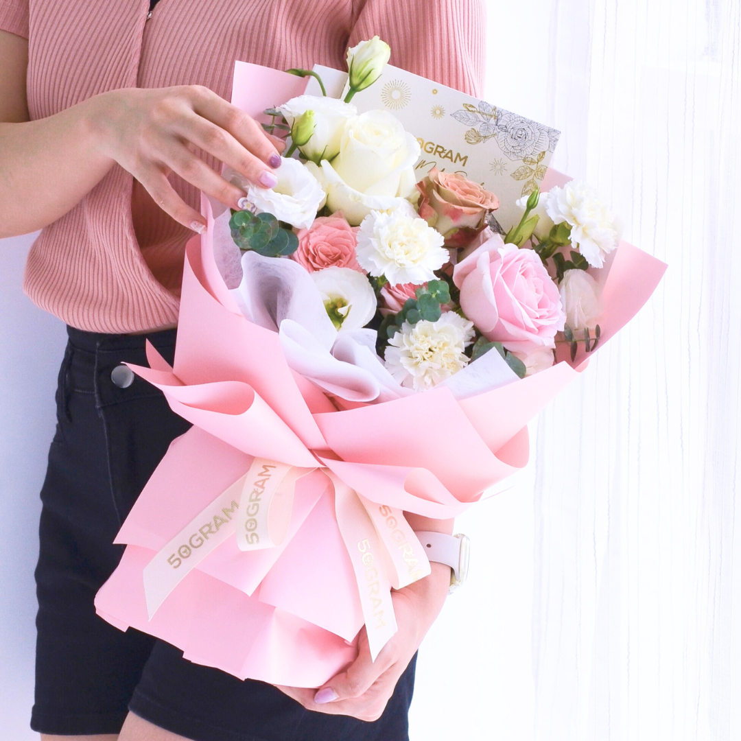 The “Love Bonds Pink Roses Hand Bouquet” is an exquisite floral arrangement that beautifully captures the essence of strong connections and heartfelt emotions. This hand bouquet combines delicate pink roses and charming cappuccino roses, thoughtfully arranged to symbolize the depth of love and the unique bond shared between two individuals. With free delivery in Kuala Lumpur (KL) and Petaling Jaya (PJ), surprise your loved ones or add a touch of charm to any occasion with this enchanting hand bouquet.