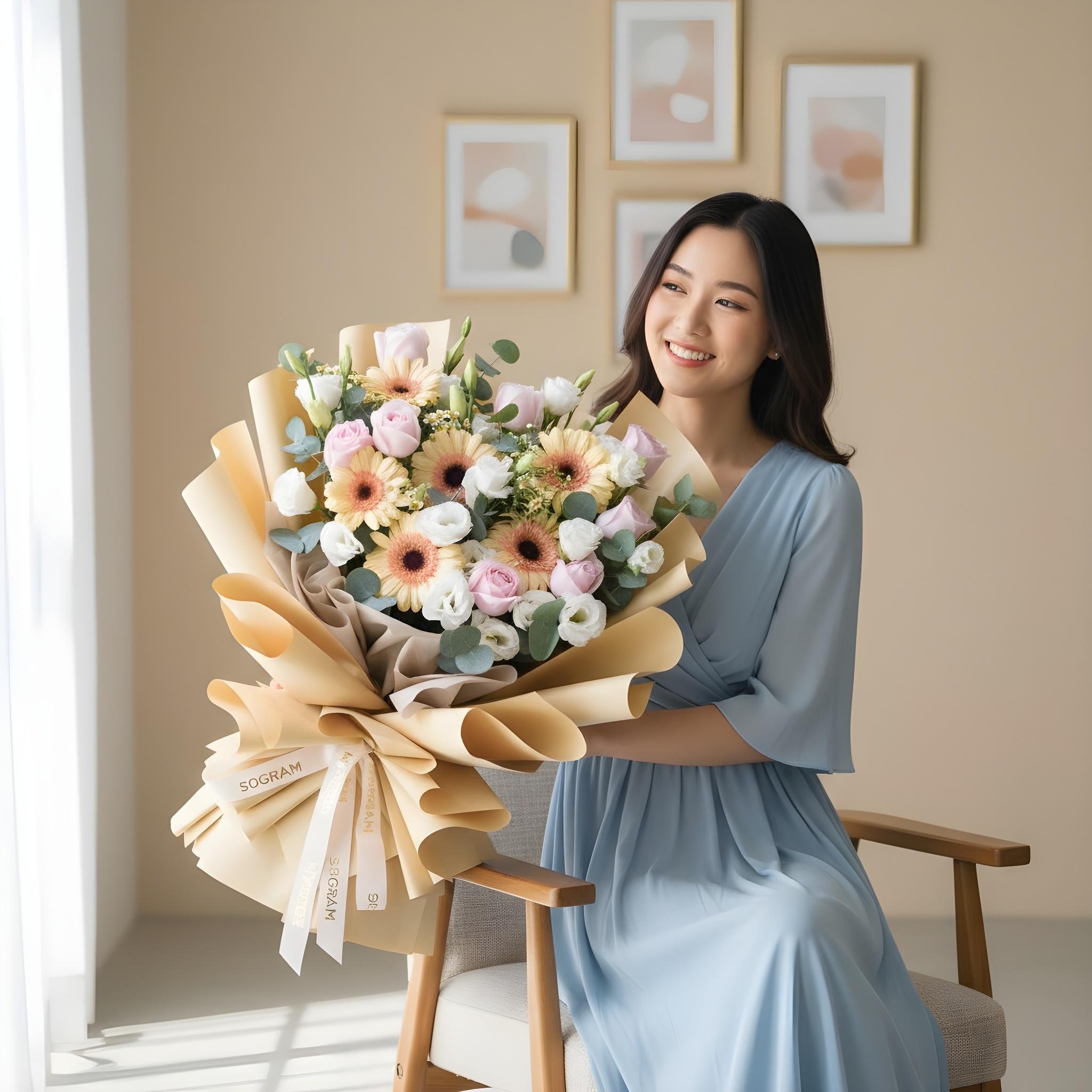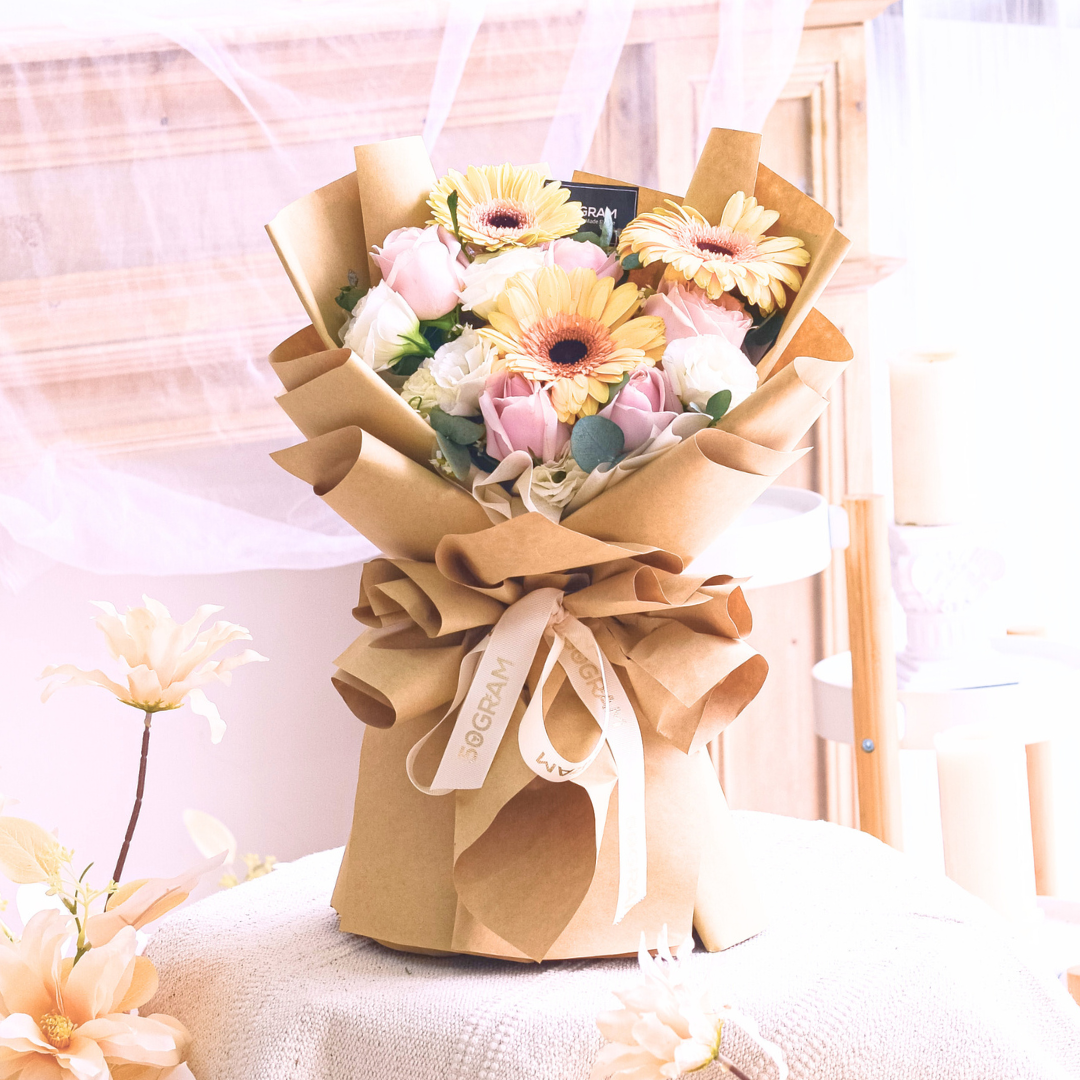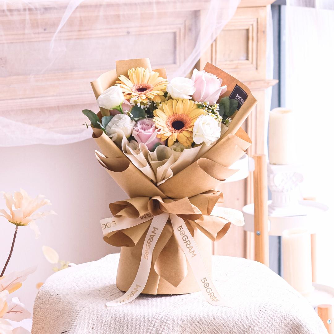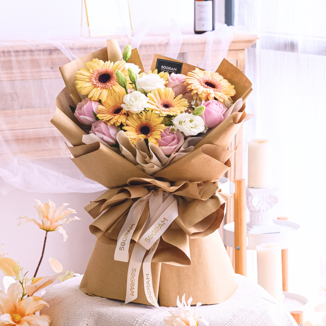 • Free Delivery in KL & PJ: Enjoy the convenience of complimentary delivery within Kuala Lumpur and Petaling Jaya. We take pride in ensuring the safe and timely delivery of your “My Everything – Champagne Daisy Hand Bouquet,” guaranteeing that it arrives in pristine condition, ready to bring joy and delight to your loved one’s day.