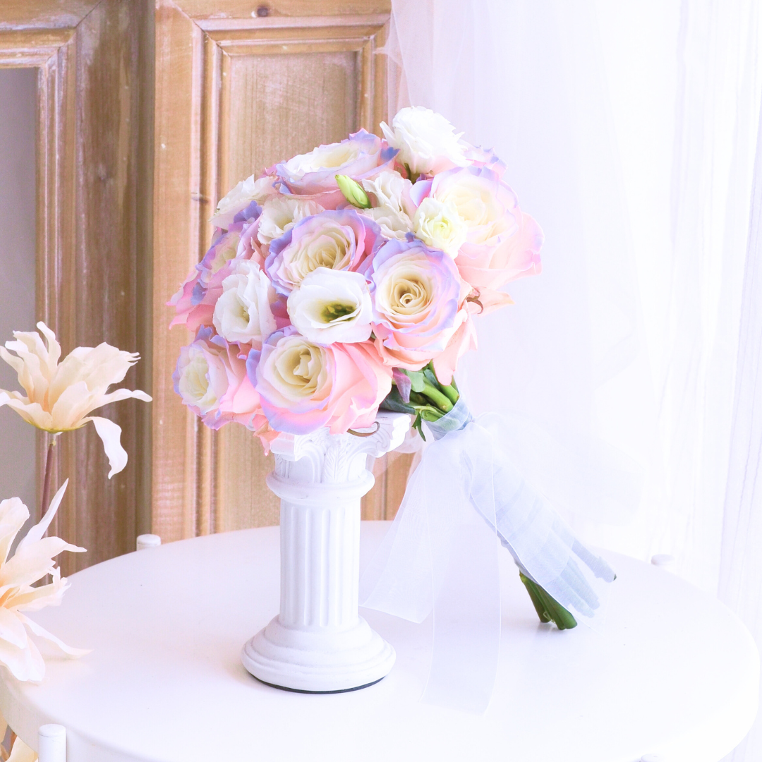 This bridal bouquet is a canvas of promises and dreams yet to unfold. The entrancing beauty of the aurora pink blue roses mirrors the allure of uncharted horizons, perfectly reflecting the anticipation that comes with uniting two souls in matrimony. The Mystic Dawn Bridal Bouquet becomes an emblem of the couple’s journey, where every petal signifies the dawn of their shared future. As the bride walks down the aisle, this bouquet in her hands, she carries with her the promise of love’s awakening, marking the start of a lifelong adventure illuminated by the hues of their united hearts.