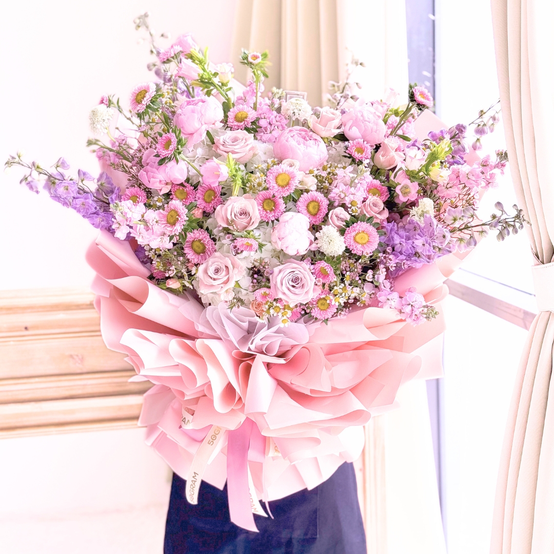 The “Noble Bloom Pink Roses Hand Bouquet” is a luxurious and enchanting arrangement that exudes elegance. Featuring soft pink roses, delicate pink peonies, charming pink asters, and lush white hydrangeas, this bouquet is a symphony of romantic hues. Perfect for expressing love, gratitude, or celebration, it radiates grace and timeless beauty. ππΈπ€