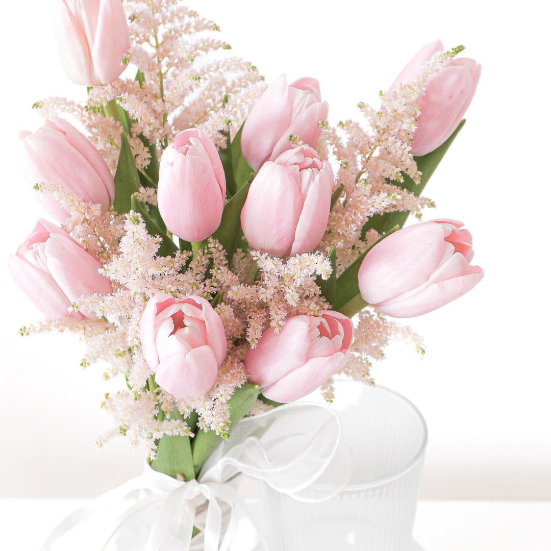 Pink Impression bridal bouquet come with 10 pink tulip & 5 astilbe pink.