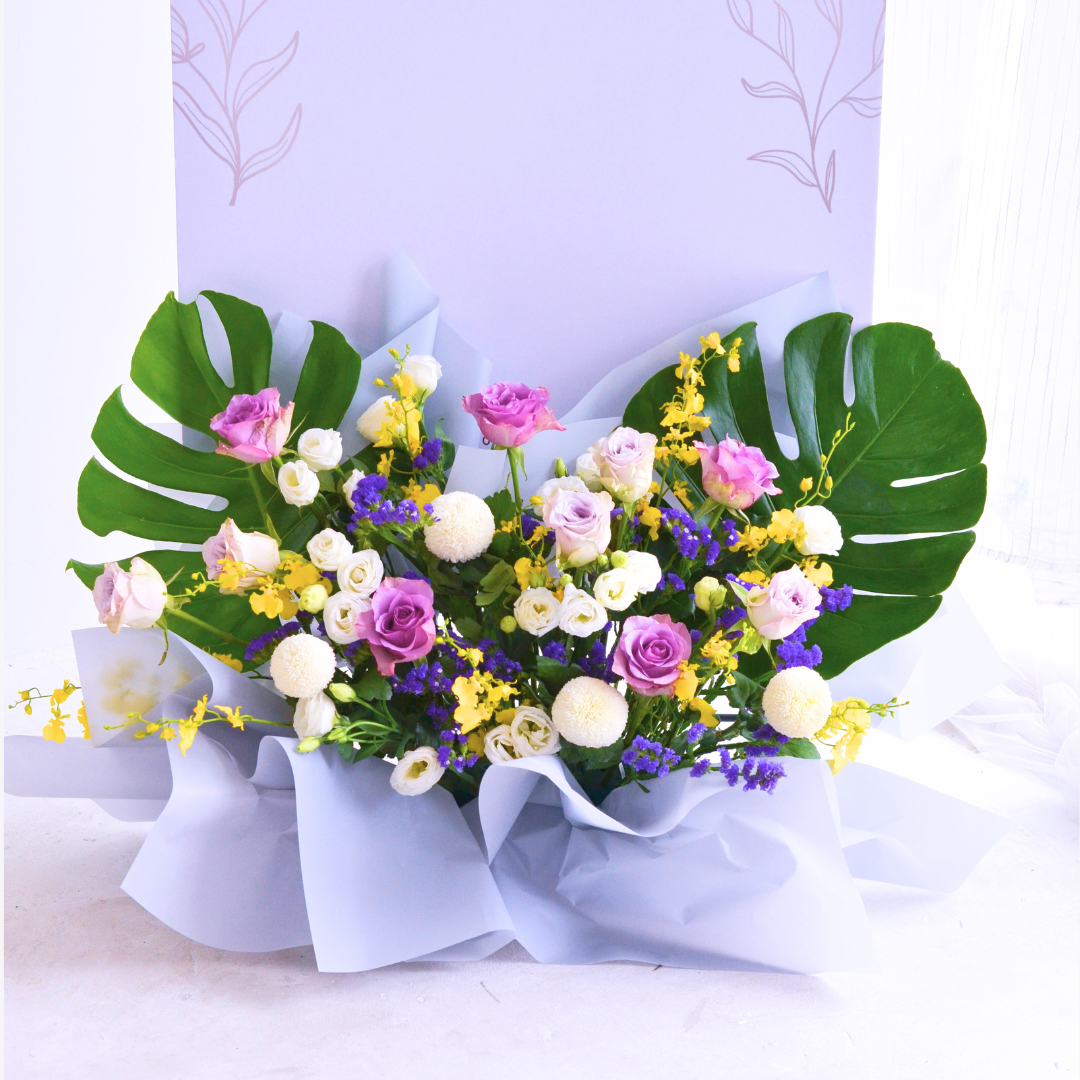 Introducing “Purple Prosperity | Business Opening Flower Steel Stand,” a majestic and auspicious floral arrangement designed to bring prosperity and success for a new business. This steel stand features a captivating display of purple flowers meticulously arranged to create a sense of elegance and abundance. With free delivery in Kuala Lumpur (KL) and Petaling Jaya (PJ), make a statement and wish someone a prosperous business journey with this remarkable floral steel stand.