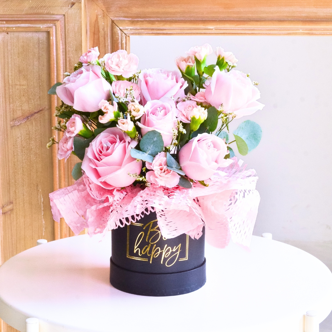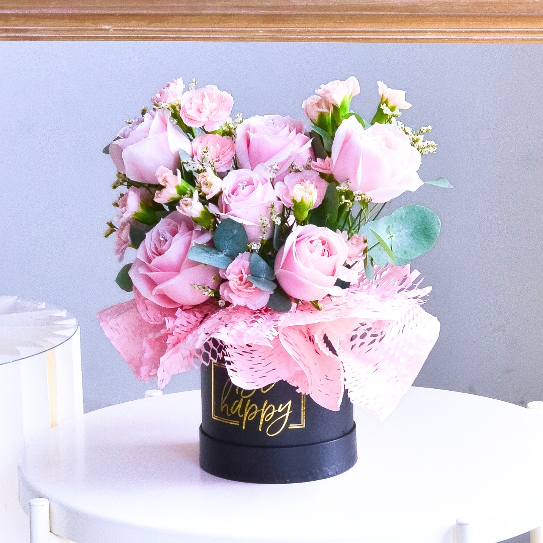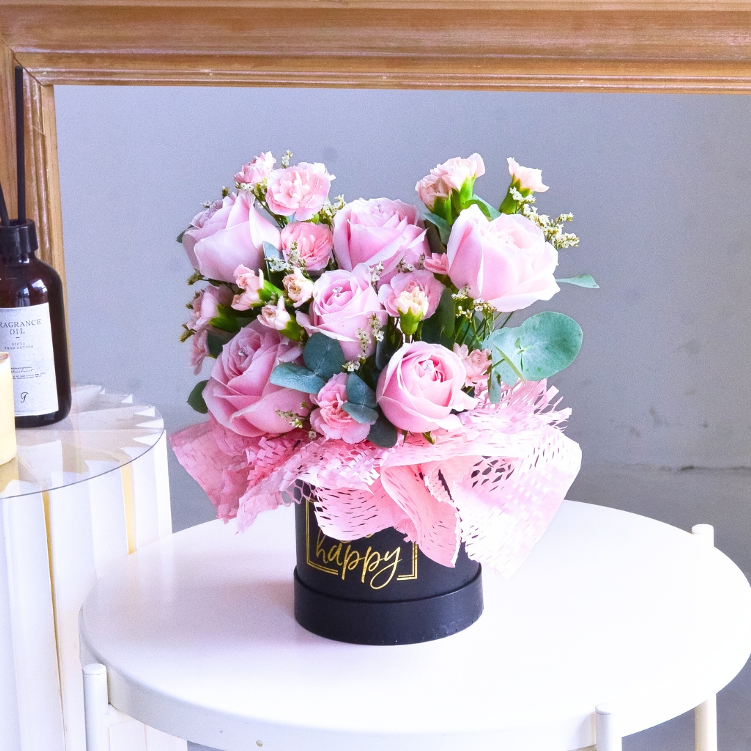 Modern elegance meets soft romance in the Rosé Edge Qi Xi Flower Box — a refined arrangement that pairs timeless blooms with a bold, minimalist presentation. Housed in a chic black flower box, this design is perfect for expressing love with a touch of sophistication.