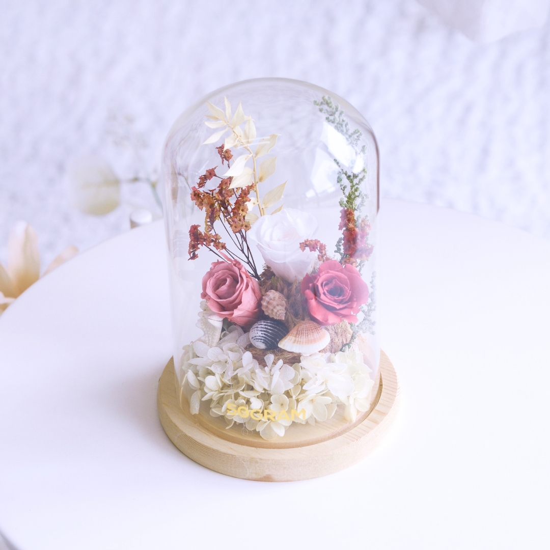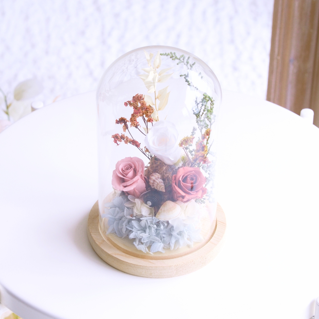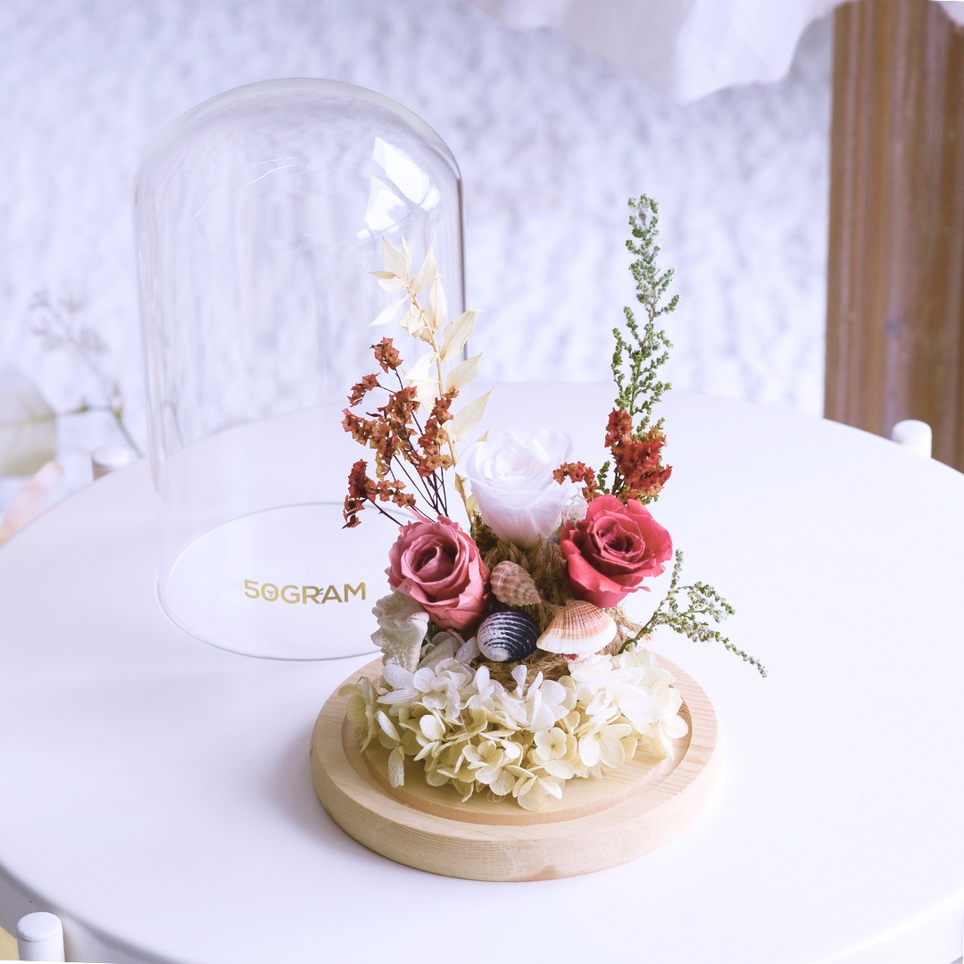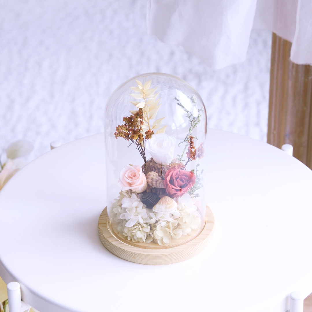 The “Sandy Shores Preserved Flower” arrangement captures the essence of the seaside with preserved flowers, starfish, and seashell props. This charming display evokes memories of sandy beaches and ocean breezes, making it a perfect decorative piece to bring coastal beauty into your home. 🌸🌊🦀