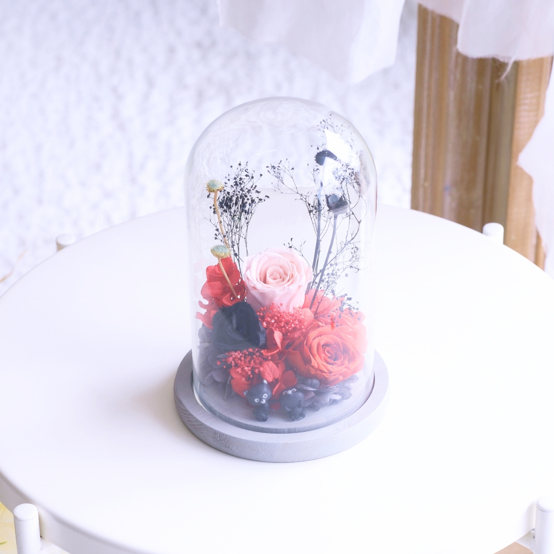 The “Shadow Rose Preserved Flower” arrangement features an elegant combination of black and red preserved roses. This striking display exudes mystery and passion, making it a captivating decorative piece that adds a touch of drama and sophistication to any space. 🌹🖤❤️