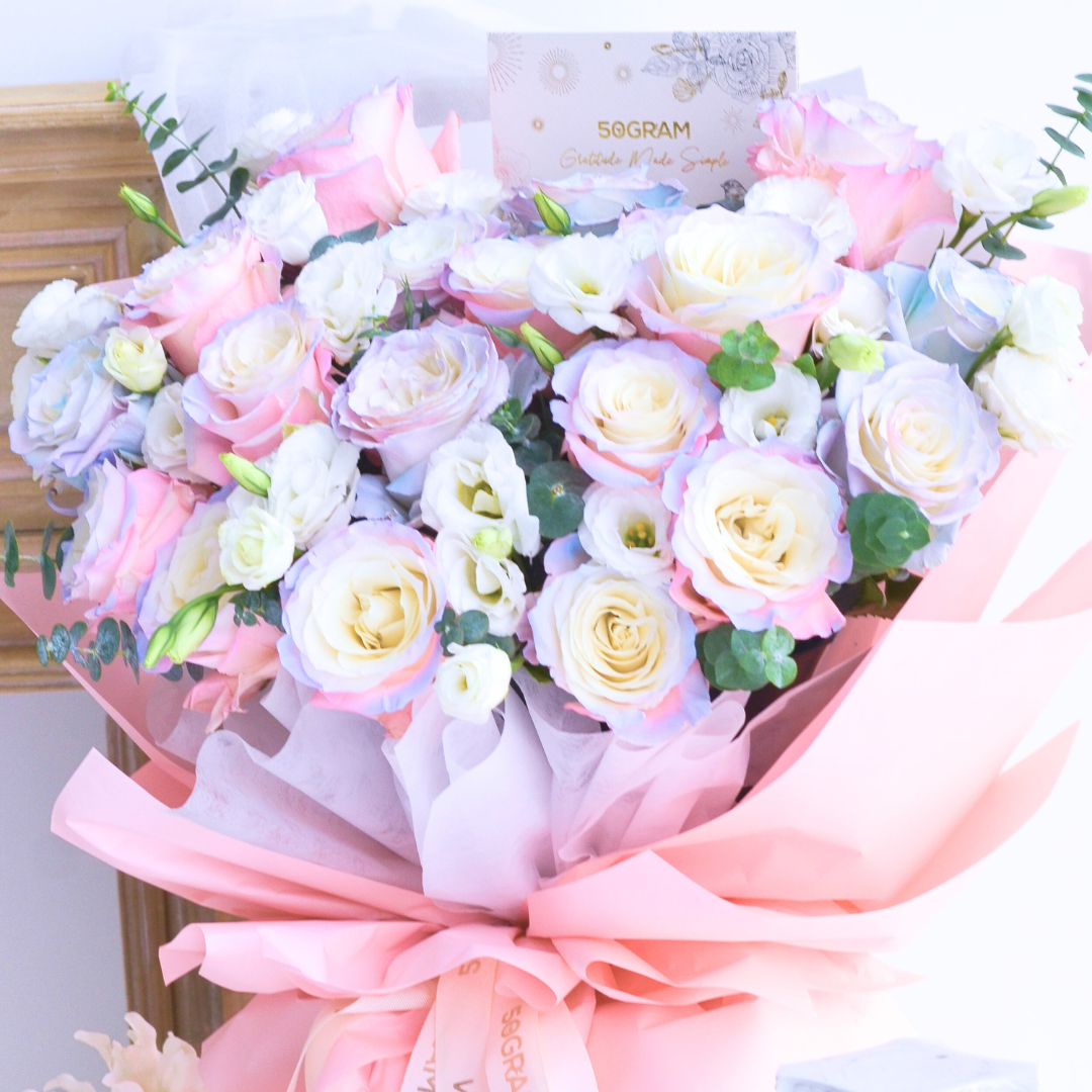 The “Sweet Promises Aurora Roses Hand Bouquet” is a mesmerizing arrangement that encapsulates the spirit of promises made from the heart. This hand bouquet showcases the enchanting beauty of sweet aurora roses, which blend delicate shades of pink and blue, evoking a sense of wonder and romance. With free delivery in Kuala Lumpur (KL) and Petaling Jaya (PJ), surprise your loved ones or add a touch of charm to any occasion with this enchanting hand bouquet.