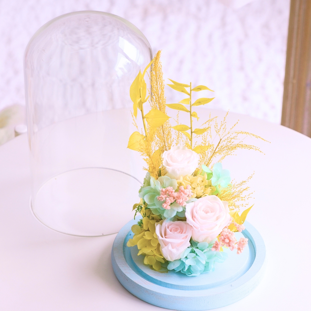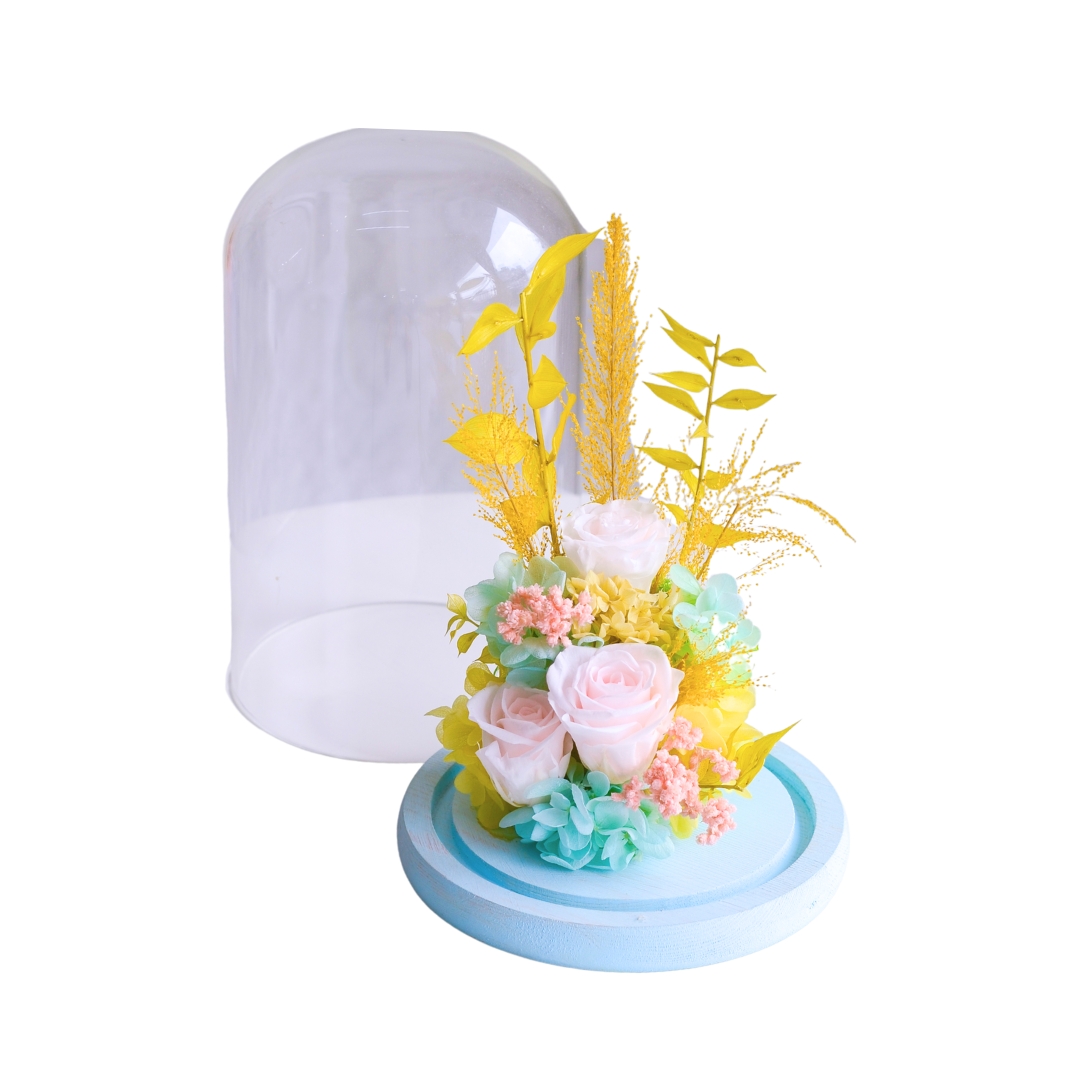 The “Vibrant Vista Preserved Jar” is a stunning and colorful arrangement featuring a pink rose, green hydrangea, yellow foliage, and a blue base. This preserved jar combines vibrant hues and lasting beauty, making it a delightful gift or decor piece that brings cheer and elegance to any space. πΈπππ
