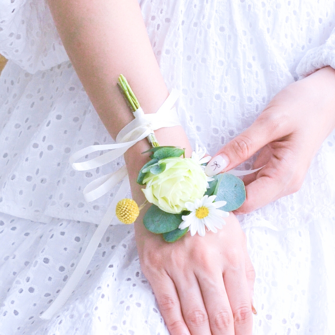 The “Vow of Forever Corsage” is a serene and elegant design, showcasing a delicate green eustoma paired with cheerful yellow scabiosa and soft white hana. Accented with fresh eucalyptus, this corsage exudes natural beauty and grace. Perfect for symbolizing enduring promises and everlasting love, it adds a touch of timeless charm to any special moment. ππΌπ€